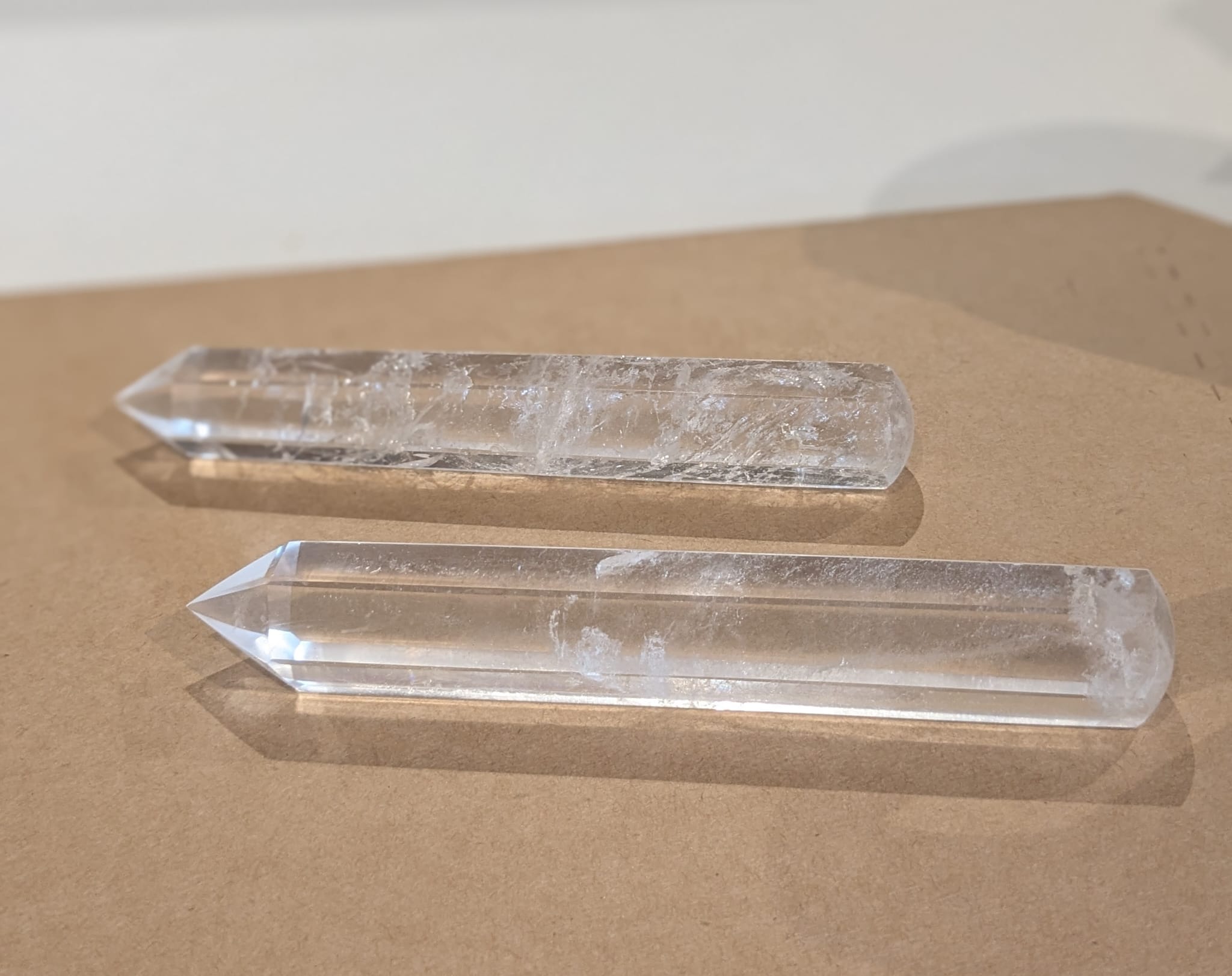 Auf einer Seite haben sie eine Kristallspitze, auf der anderen sind sie rund poliert.
