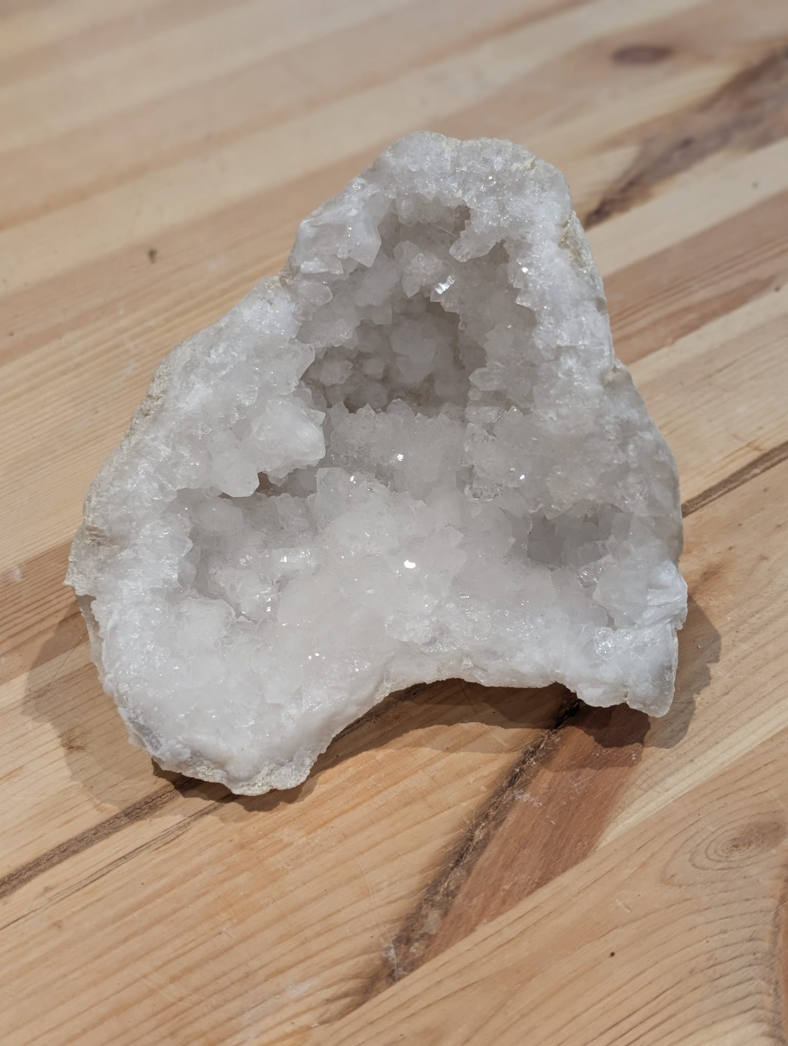 Diese Quarzdruse mit ihren zahlreichen starken Spitzen und einer harmonischen Vertiefung ist klein, aber kraftvoll. Sie eignet sich wunderbar zur energetischen Reinigung deiner Edelsteine und bringt zugleich Licht und Klarheit in deinen Raum.