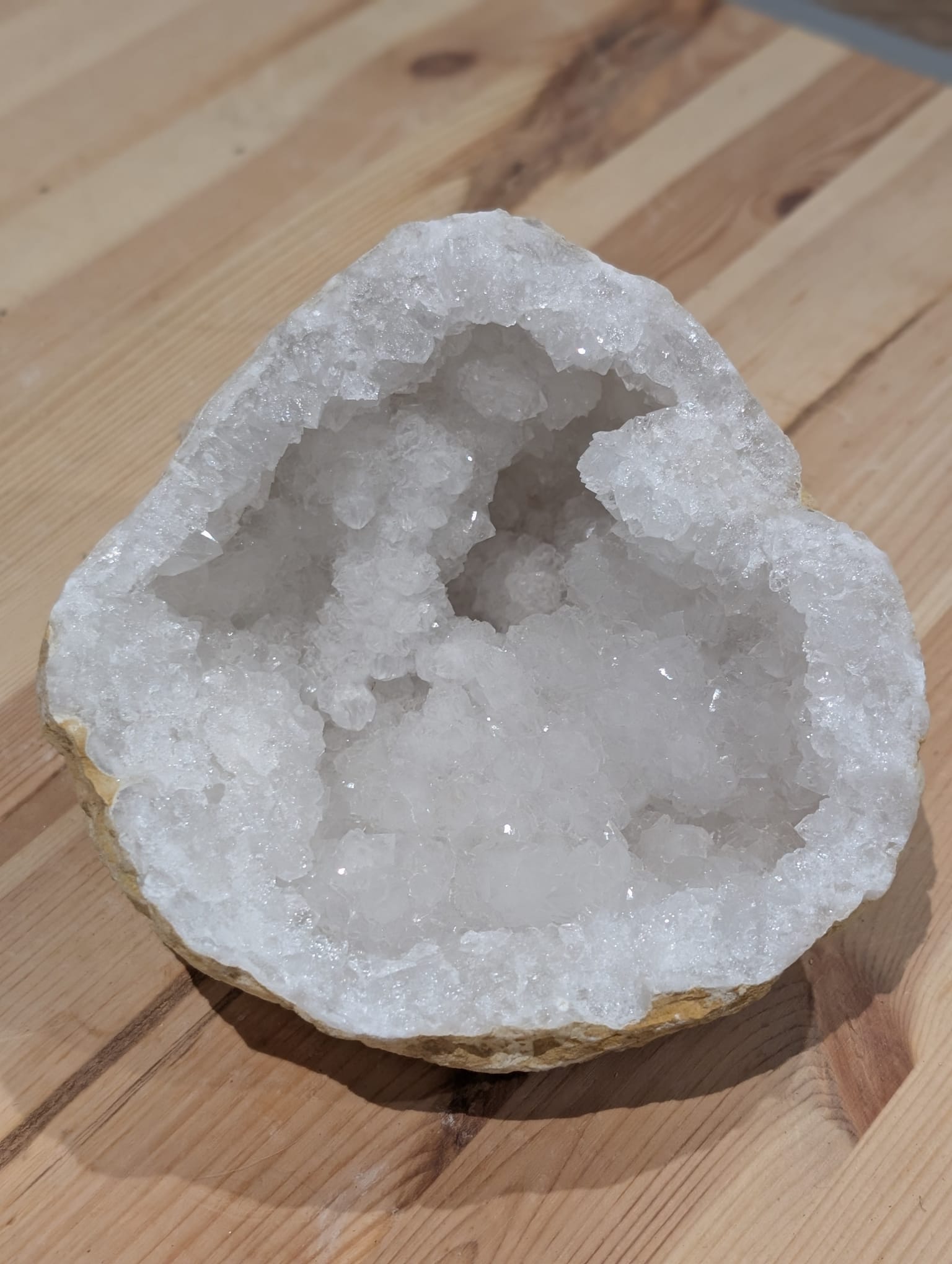 Diese besondere Druse beeindruckt durch ihre natürlich fließend geformte Schale – ideal zur energetischen Reinigung von Trommelsteinen, Pendeln und anderen spirituellen Begleitern.