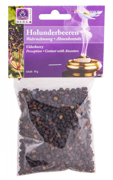 Holunder ist eine alte Ritualpflanze, die eine Brücke in die Anderswelt baut. Er hilft den Kontakt zu unseren Ahnen herzustellen und wehrt negative Angriffe ab. Holunder wird auch zum Orakeln geräuchert - er öffnet die Schleier und vermittelt die Antworten. Beim Räuchern entwickeln die Beeren einen herben, fruchtigen Duft.