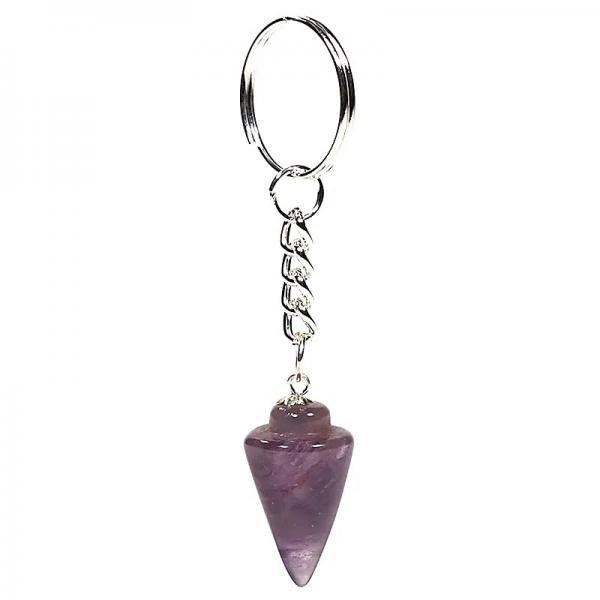 Praktisch am Schlüsselbund ist er immer in greifbarer Nähe. Der Amethyst ist sehr schön und schwingt gut.