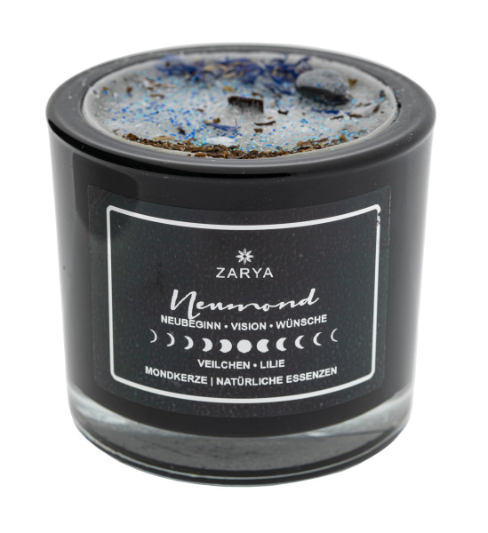 Mystische Ritualkerze „Neumond“ – mit Veilchen, Lilie & Hämatit