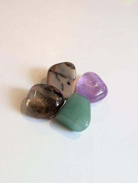 Oft fragen mich Klienten nach einem Set, dass ausgeleichend, beruhigend und entstressend wirkt. Ich habe mit den Steingeistern dann geschaut welche Steine gut zusammen schwingen und hier besonders gut wirken können. Es sind dann der Mookait ( ausgleichend, beruhigend und behütend), der grüne Aventurin ( beruhigend, harmonisierend und entschleuinigend) der Amethyst (öffnend anzunehmen wie es gerade ist, zur Ruhe kommen) und der Rauchquarz (entstressend, ausgleichend und harmonisierend) geworden. Und das Set schwingt wirklich ganz besonders.
